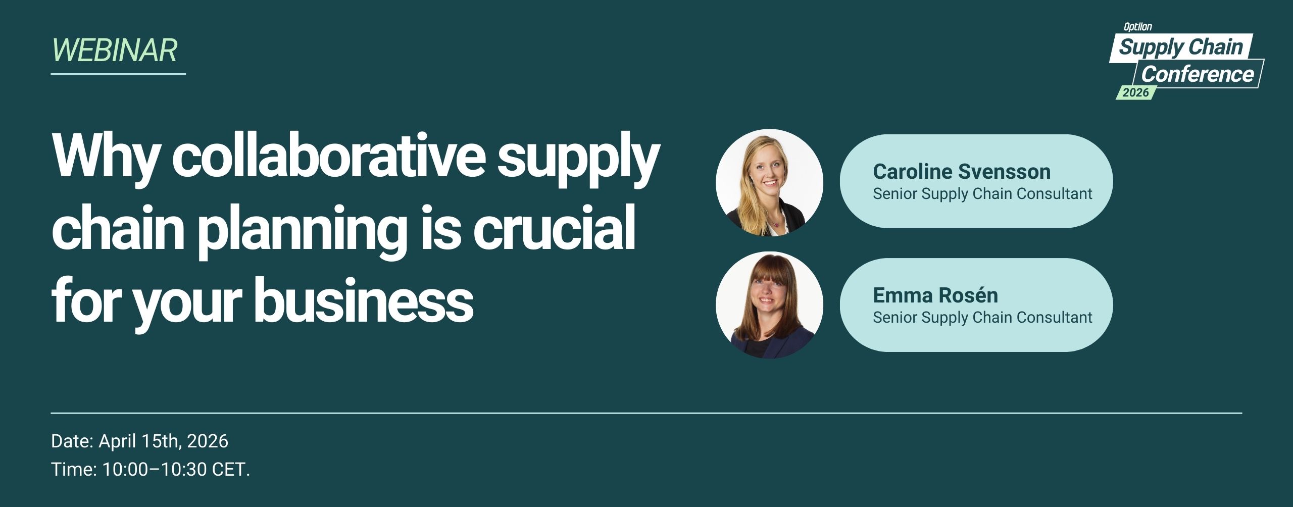 Welcome to this webinar hosted by Optilon Supply Chain Conference. In this session, Caroline Svensson and Emma Rosén will discuss the importance of collaborative planning and how your organization benefits from having a unified dataset and insights across multiple roles in your supply chain planning.