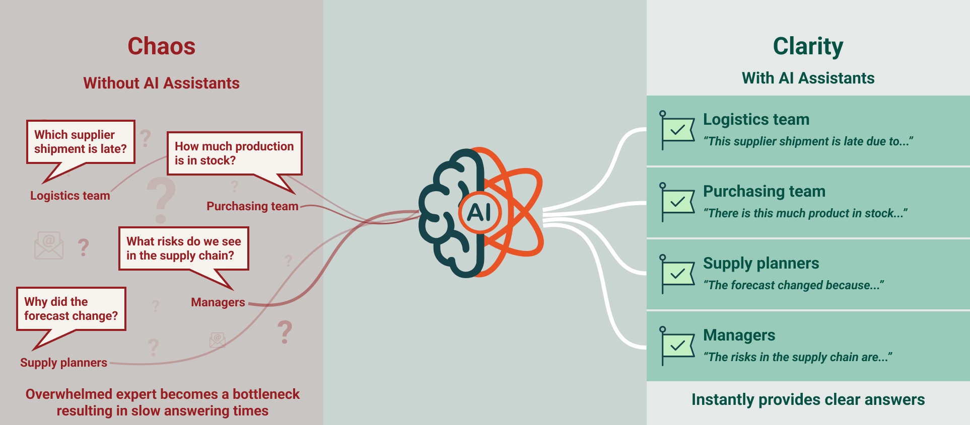 Assistants integrate directly into daily workflows. Planners can retrieve parameters, understand forecast changes, navigate policies, and investigate exceptions in real time. Executives can explore insights on demand without waiting for scheduled reports.