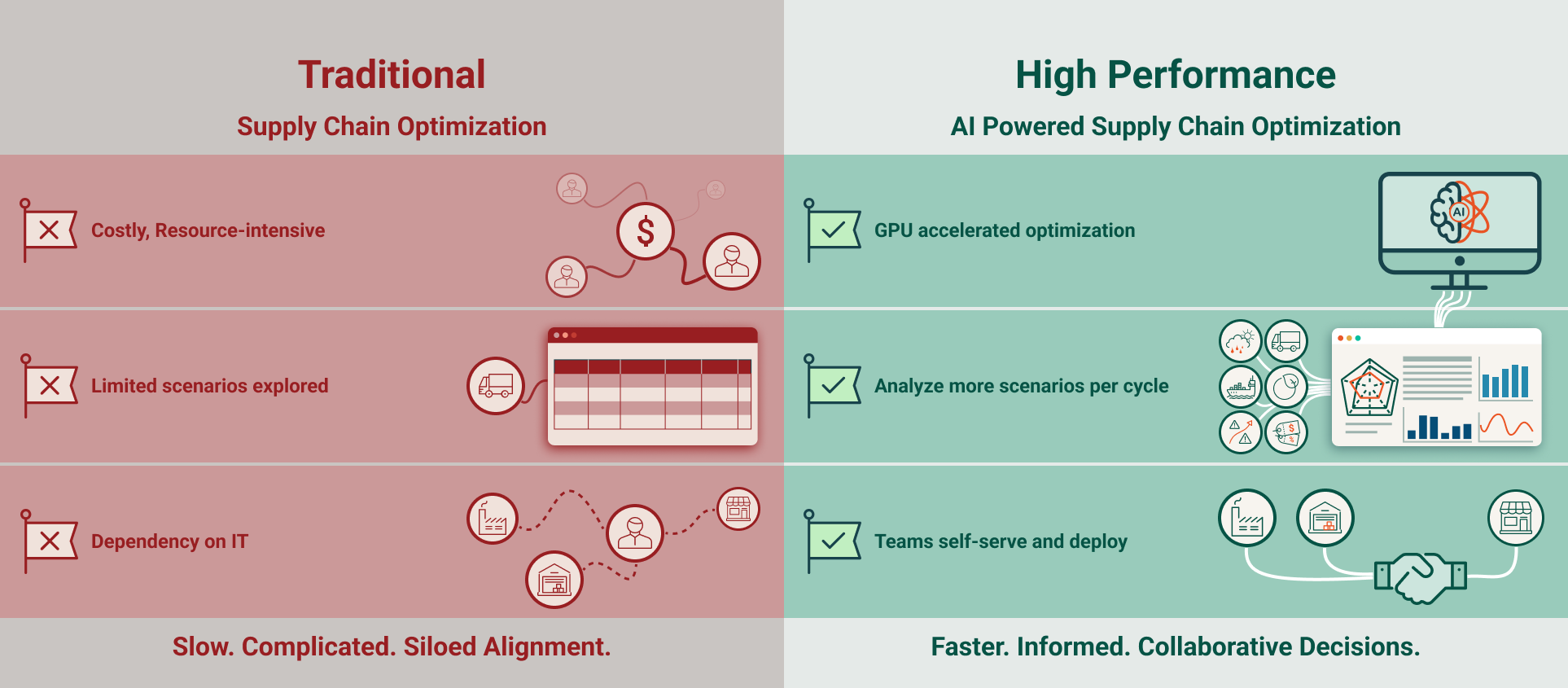 GPU-accelerated optimization makes it possible to run larger and more complex models faster. Giving organizations the ability to explore more alternatives.